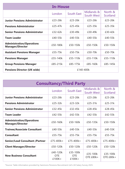 Congratulations, you have been rewarded for your hard work and now have been promoted! Salaries across Pensions/Senior Pensions Administrators have seen the largest overhaul in the last couple of years, partly inflation driven, but also by employers recognising the lack of available talent in the market at this level, both in-house and in third-party/consultancy.